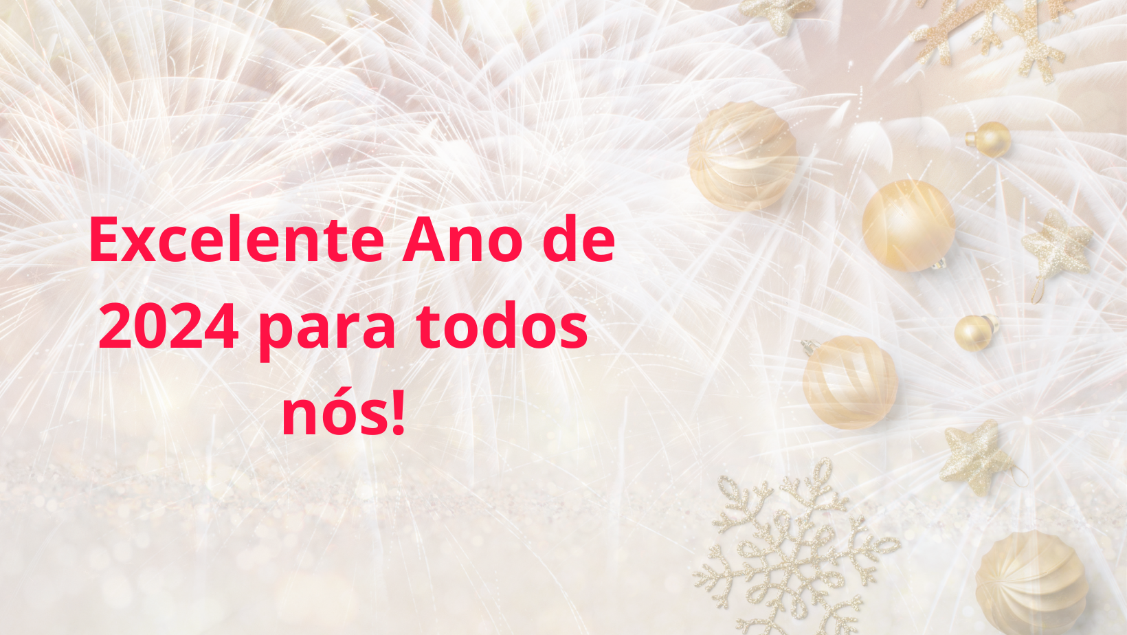 Para você desejo que neste novo ano haja excelente saúde, novos conhecimentos, sentimentos equilibrados, espírito tranquilo, muito lazer, boa organização. Que os relacionamentos sejam saudáveis e enriquecedores. Que você trabalhe com alegria e ganhe dinheiro em abundância. Que seus recursos financeiros sejam utilizados com sabedoria. Que você possa contribuir para uma sociedade mais harmoniosa. E que esse ano seja mais um capítulo para a formação de um legado que abençoará muitas e muitas pessoas.